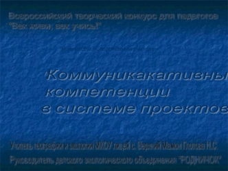 Формирование коммуникативной компетенции в ходе проектной природоохранной деятельности» В настоящее время компетентностный подход является одним из наиболее развивающихся направлений педагогической теории и практики. Это не просто набор знаний и умений, но и способность установить и реализовать связь между знаниями,