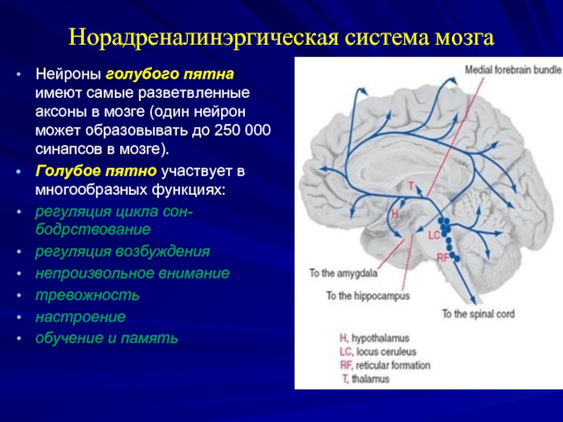 Слайд 25Норадреналинэргическая система мозга