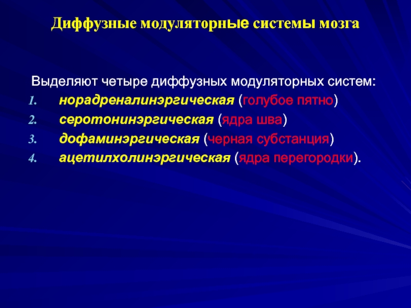 Выделяют четыре диффузных модуляторных систем: