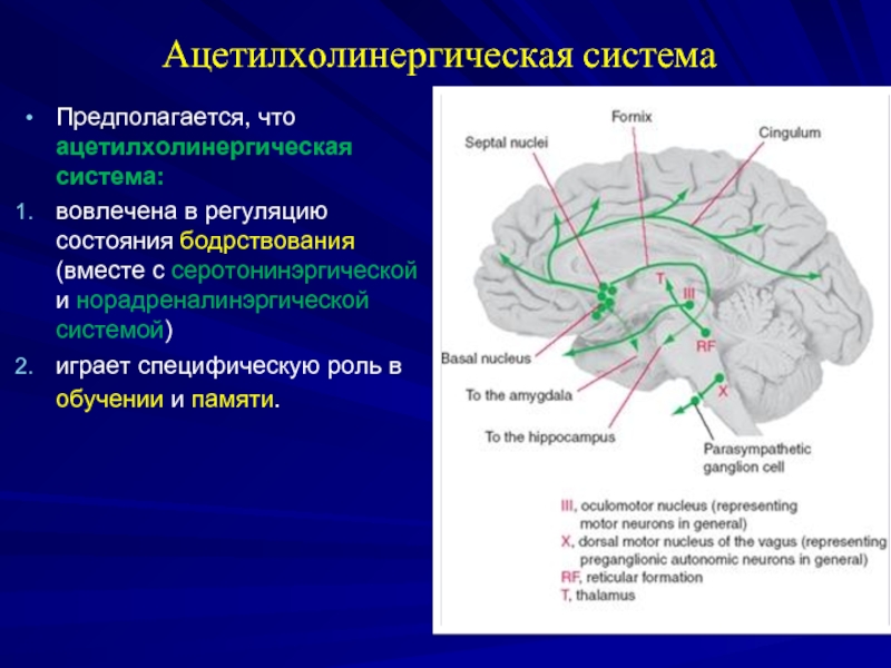 Слайд 34Ацетилхолинергическая система