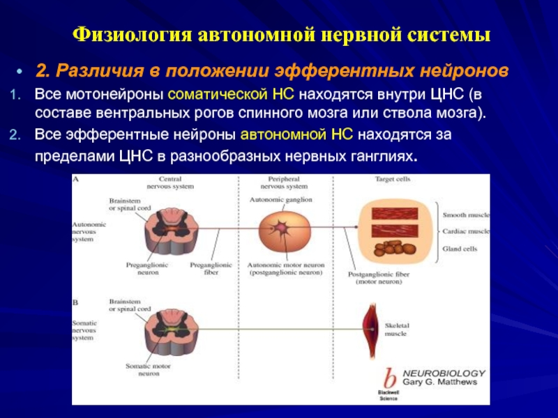 Различия автономной и соматической нервной