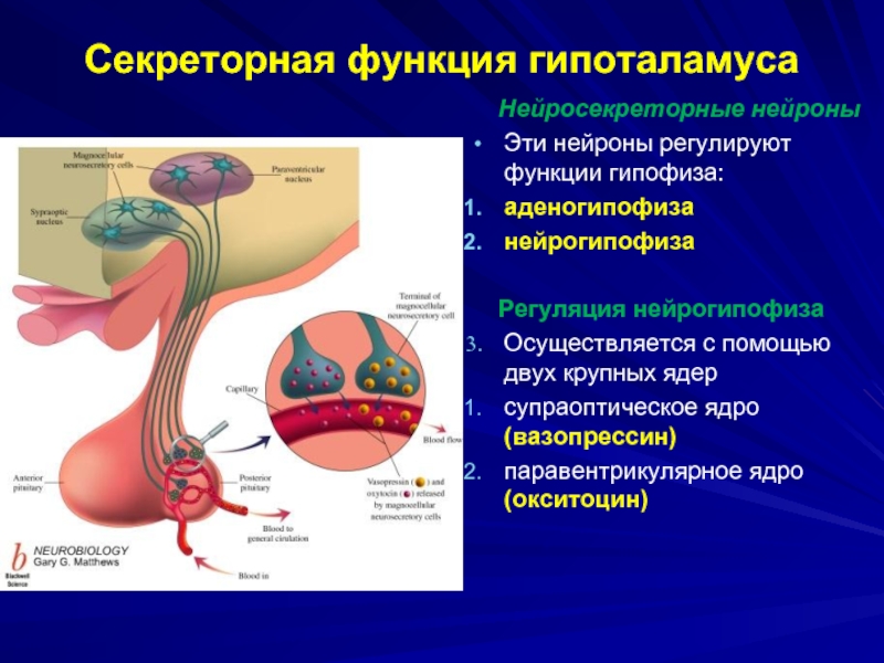 Слайд 4Секреторная функция гипоталамуса