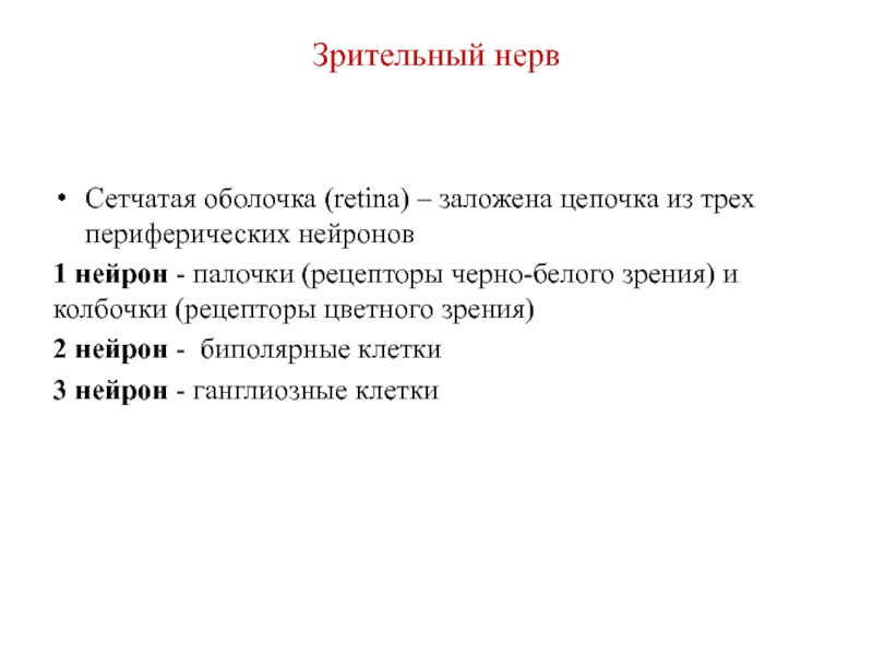 Сетчатая оболочка (retina) – заложена цепочка из трех периферических