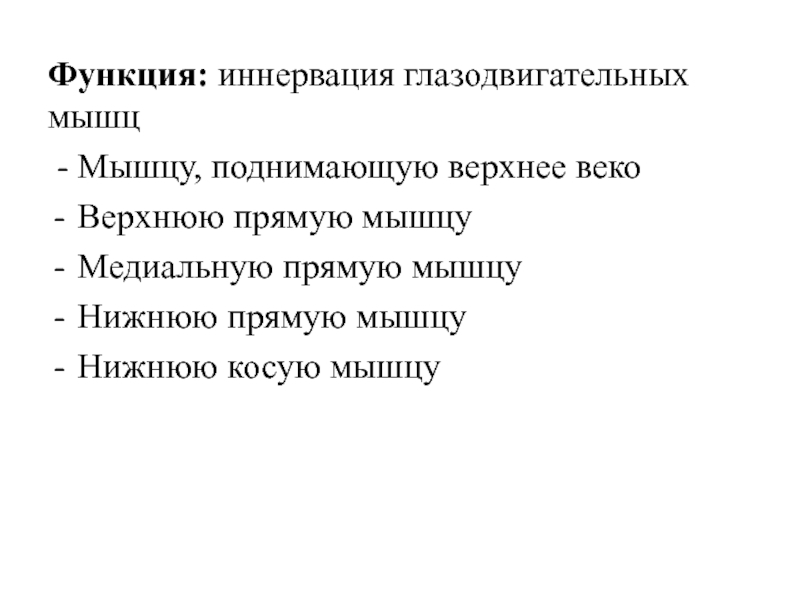 Слайд 31Функция: иннервация глазодвигательных мышц