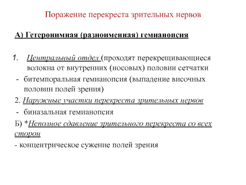 Б) *Неполное сдавление зрительного перекреста со всех сторон
