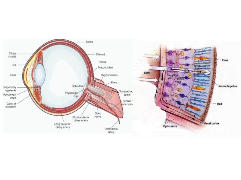 Слайд 6Совокупность аксонов ганглиозных клеток образует зрительный нерв - зрительный перекрест (chiasma