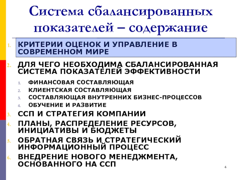 Слайд 4Система сбалансированных показателей – содержание