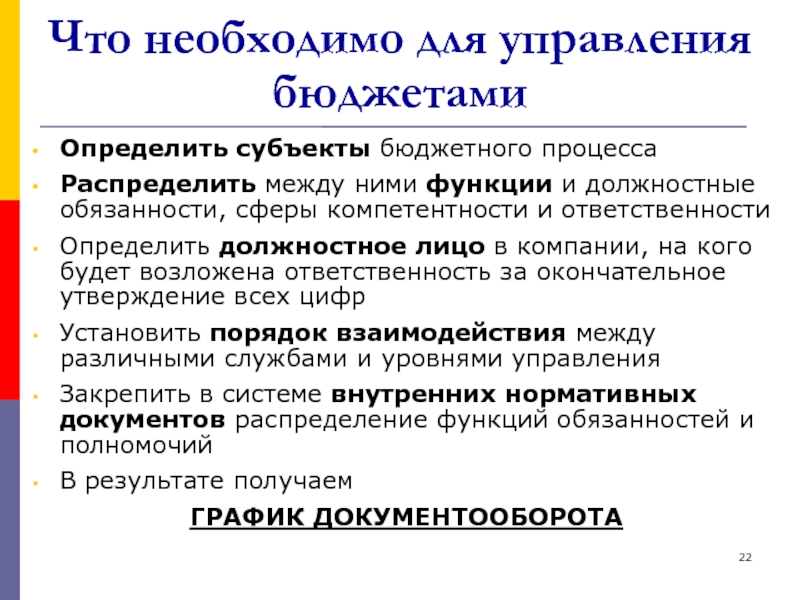 Слайд 22Что необходимо для управления бюджетами