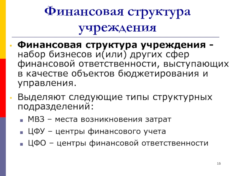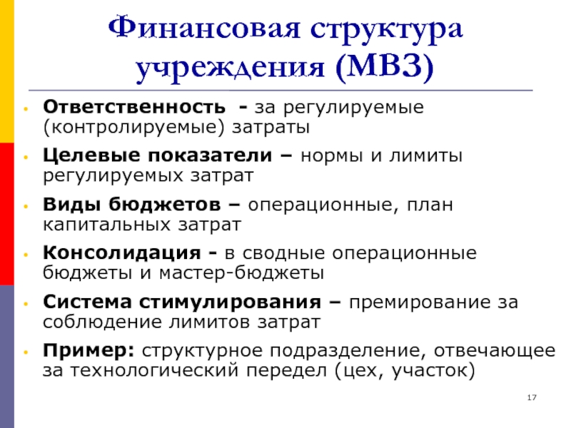 Слайд 17Финансовая структура учреждения (МВЗ)