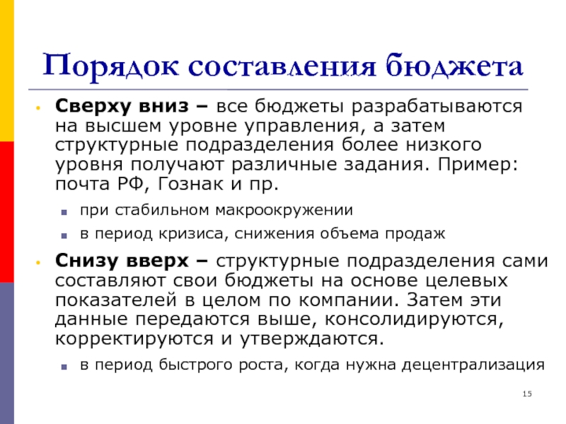 Слайд 15Порядок составления бюджета
