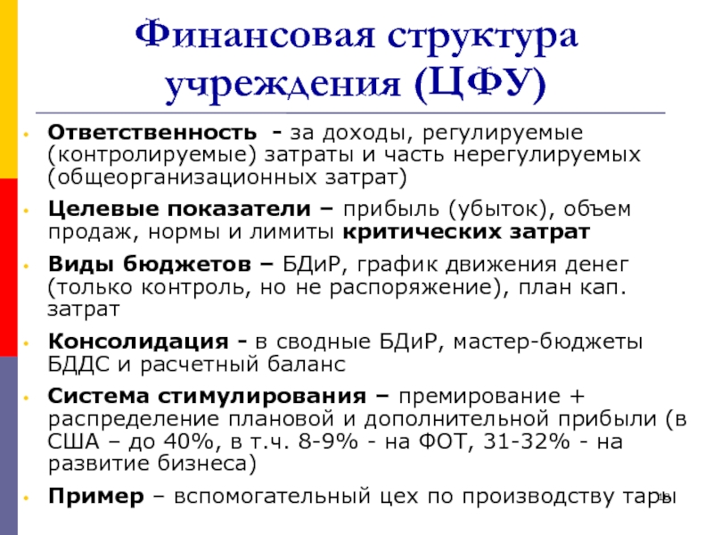 Слайд 18Финансовая структура учреждения (ЦФУ)