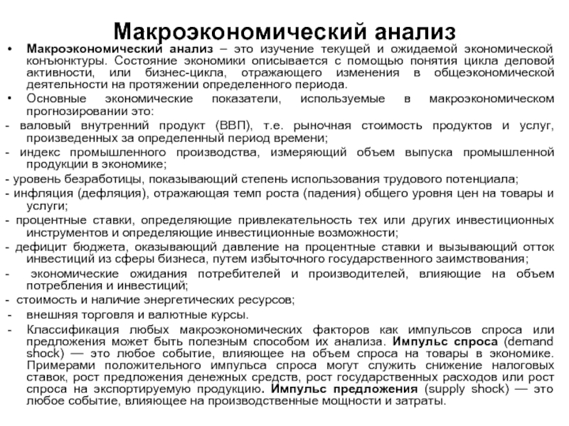 Макроэкономический анализ – это изучение текущей и ожидаемой экономической конъюнктуры.