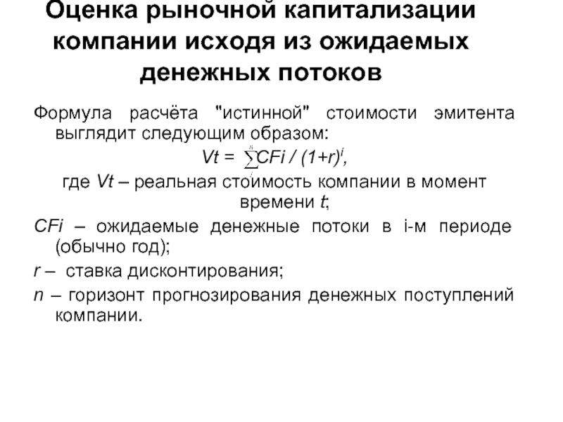 Слайд 8Оценка рыночной капитализации компании исходя из ожидаемых денежных потоков
