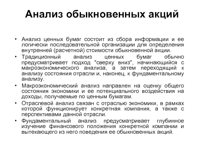 Слайд 4Анализ обыкновенных акций
