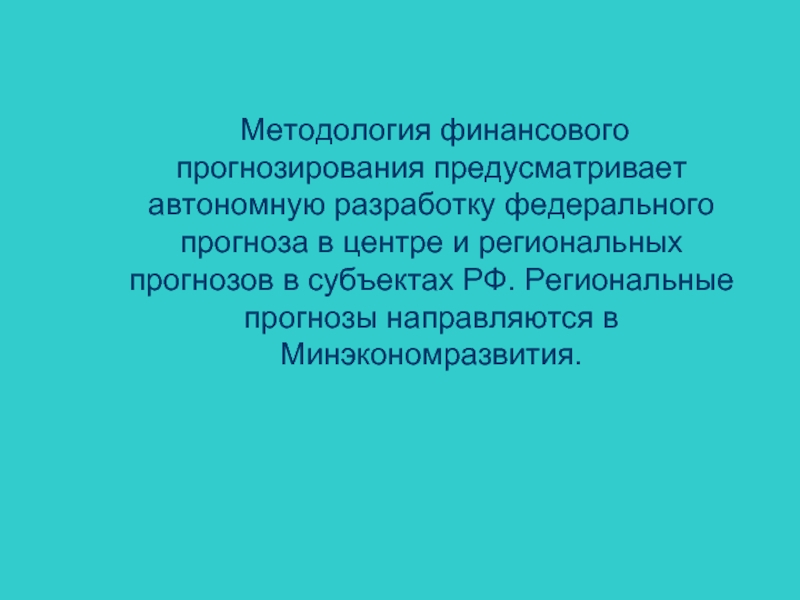 Слайд 7 Методология финансового прогнозирования предусматривает автономную разработку федерального прогноза