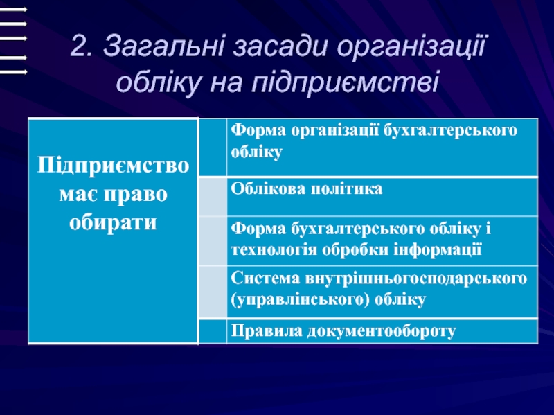 Слайд 162. Загальні засади організації обліку на підприємстві