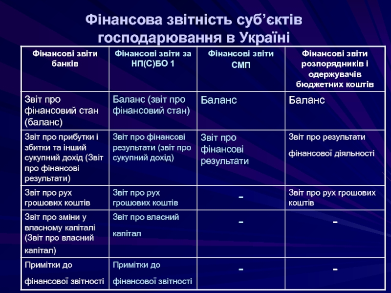Слайд 19Фінансова звітність суб’єктів господарювання в Україні