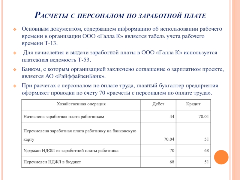 Тема : Учет текущих операций и расчетов на примере ООО «Галла К»