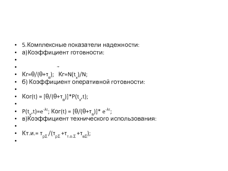 Кг=θ/(θ+τв); Кг=N(tx)/N;