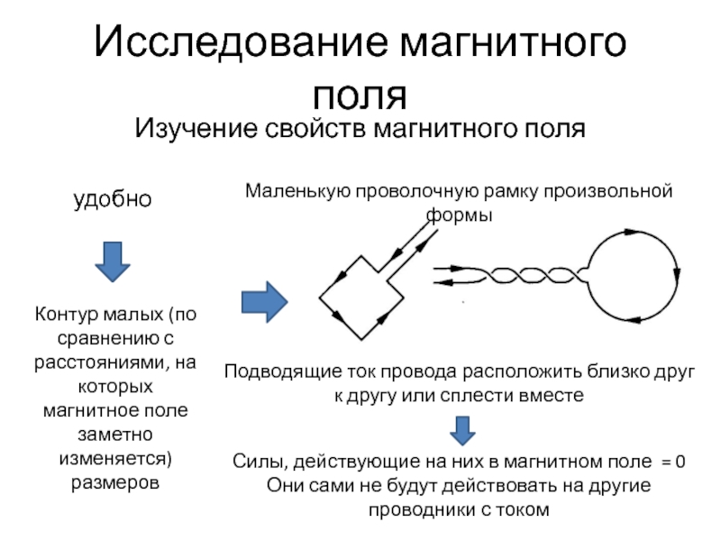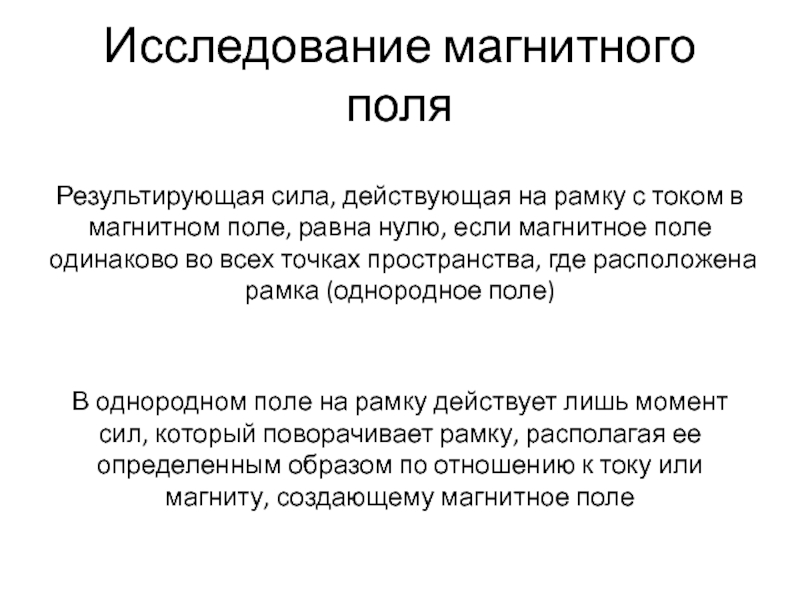 В однородном поле на рамку действует лишь момент сил, который поворачивает рамку, располагая ее определенным образом по отношению к току или магниту, создающему магнитное поле