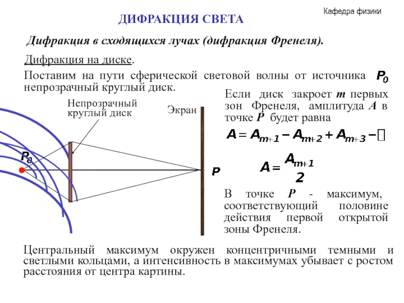 На пути сферической световой волны стоит непрозрачный экран с круглым отверстием.