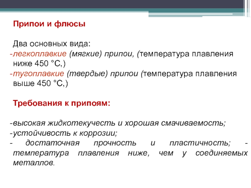 легкоплавкие (мягкие) припои, (температура плавления ниже 450