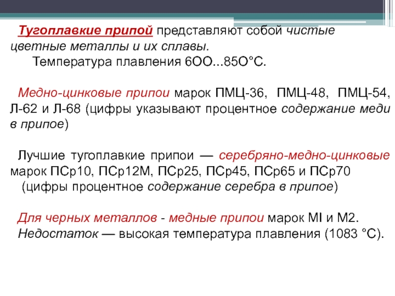 Слайд 11Тугоплавкие припой представляют собой чистые цветные металлы и их сплавы.