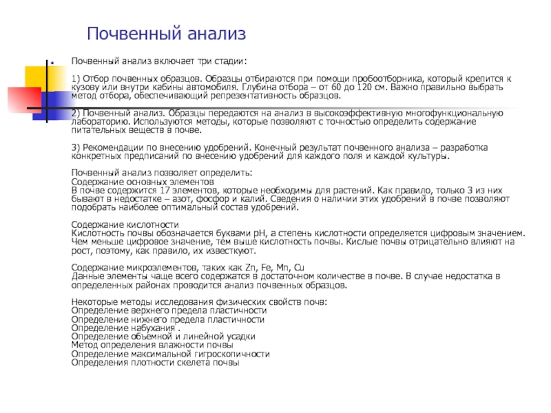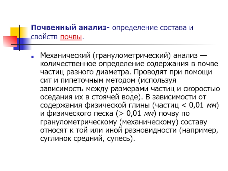 Слайд 13Почвенный анализ- определение состава и свойств почвы.