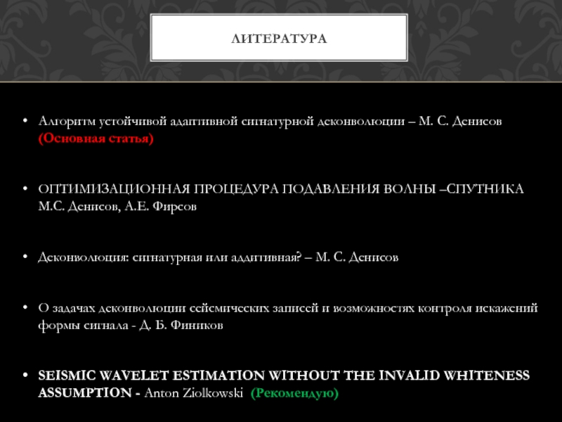 3) Подробная теория оценки сигнатуры сейсмических данных: Г. Н. Гогоненов 1987
