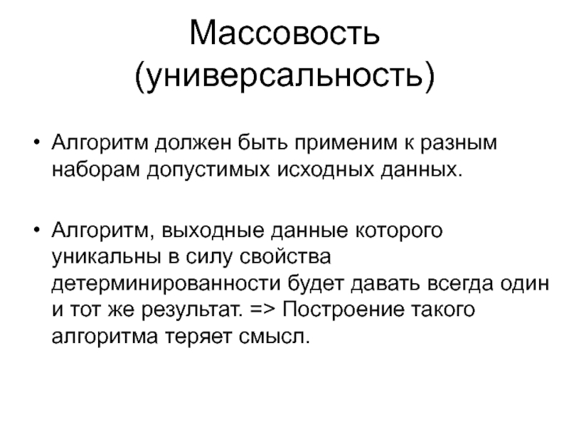 Алгоритм должен быть применим к разным наборам допустимых исходных