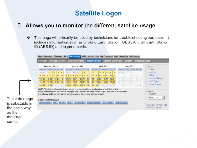 The date range is selectable in the same way as the message center.