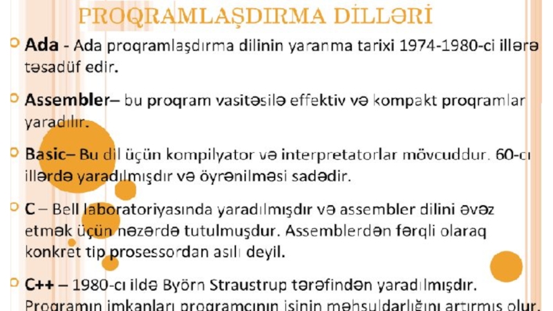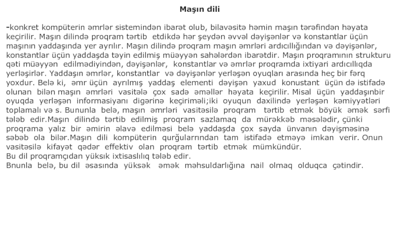 Слайд 18Kompyüterdə ixtiyari problemi həll etmək üçün proqramlaşdırma dillərindən istifadə edilir. Məsələ