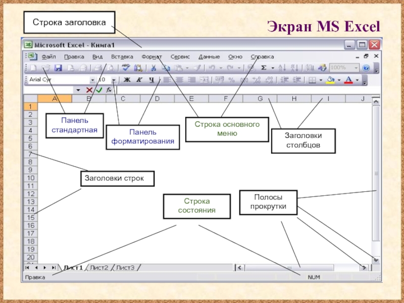 Указатель текущей ячейки перемещают мышью или курсорными клавишами.