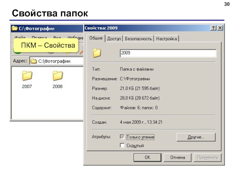 Вложенная папка (подкаталог) – это папка, расположенная внутри другой папки.