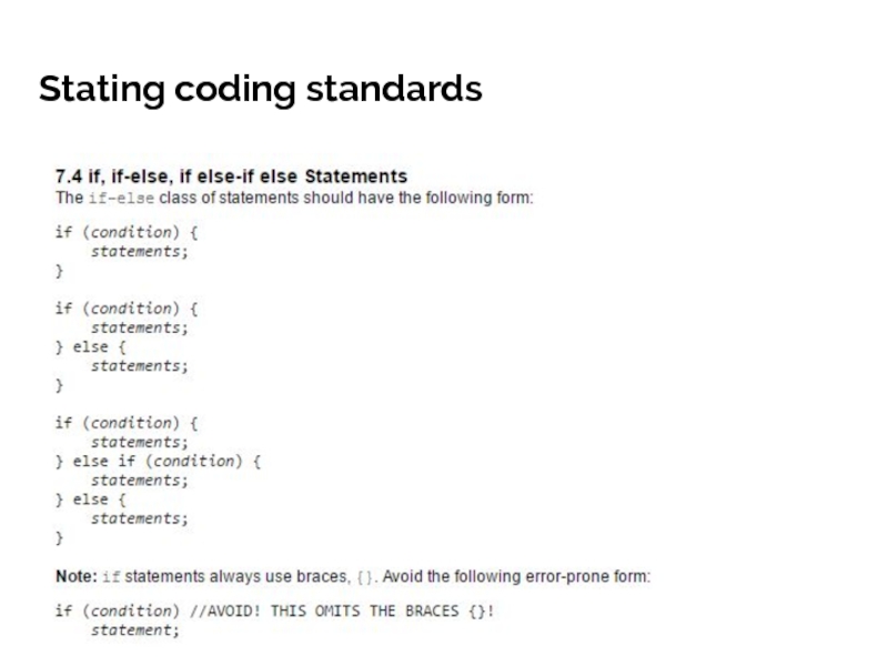 Слайд 8Stating coding standards