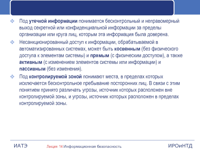 - электромагнитные (перехват побочных электромагнитных излучений и наводок на соседние линии, цепи питания и заземления);