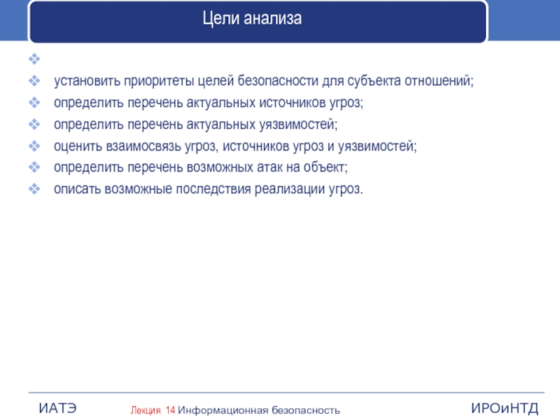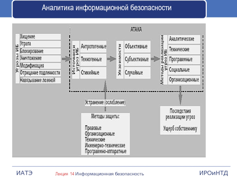 Классификация возможностей реализации угроз (атак), представляет собой совокупность возможных вариантов действий источника угроз определенными методами реализации с использованием уязвимостей, которые приводят к реализации целей атаки. Цель атаки может не совпадать с целью реализации угроз и может быть направлена на получение промежуточного результата, необходимого для достижения в дальнейшем реализации угрозы. В случае такого несовпадения атака рассматривается как этап подготовки к совершению действий, направленных на реализацию угрозы, т.е. как «подготовка к совершению» противоправного действия. Результатом атаки являются последствия, которые являются реализацией угрозы и/или способствуют такой реализации.