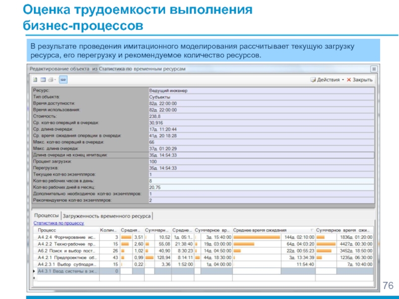 Имитационное моделирование позволяет смоделировать пошаговое выполнение процесса, в результате проведения ряда экспериментов можно оценить среднее значение и разброс времени выполнения и стоимости процесса