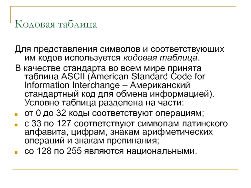 Слайд 3Кодовая таблица