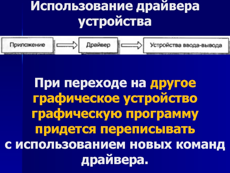 Слайд 3Драйвер устройства - набор аппаратно-зависимых кодов, управляющих процессором графического устройства.