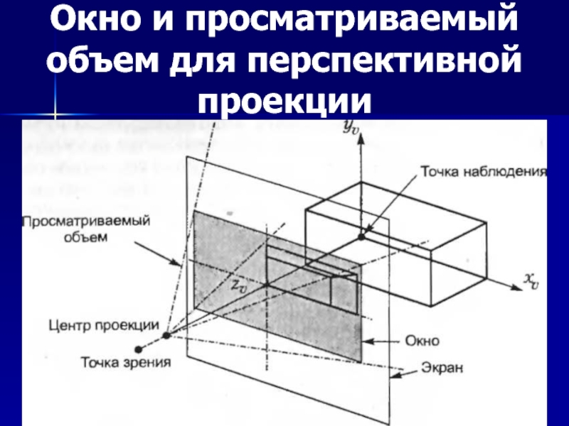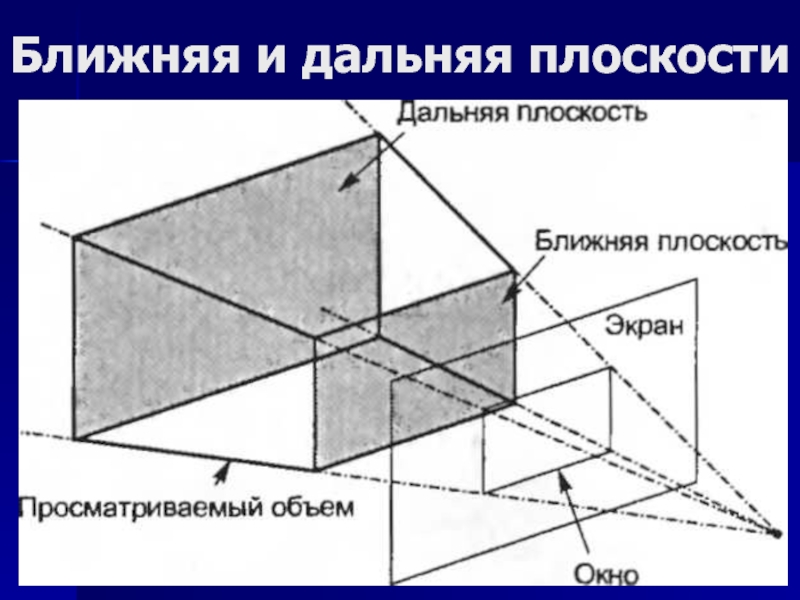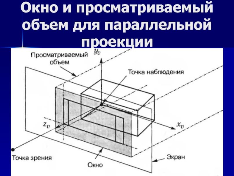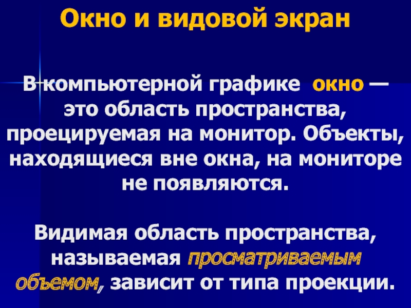 Видимая область пространства, называемая просматриваемым объемом, зависит от типа проекции.