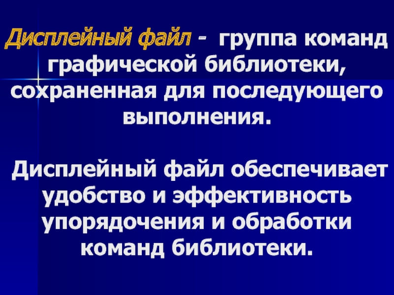 Дисплейный файл обеспечивает удобство и эффективность упорядочения и обработки команд библиотеки.