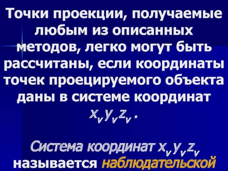 Слайд 18Точки проекции, получаемые любым из описанных методов, легко могут быть рассчитаны,