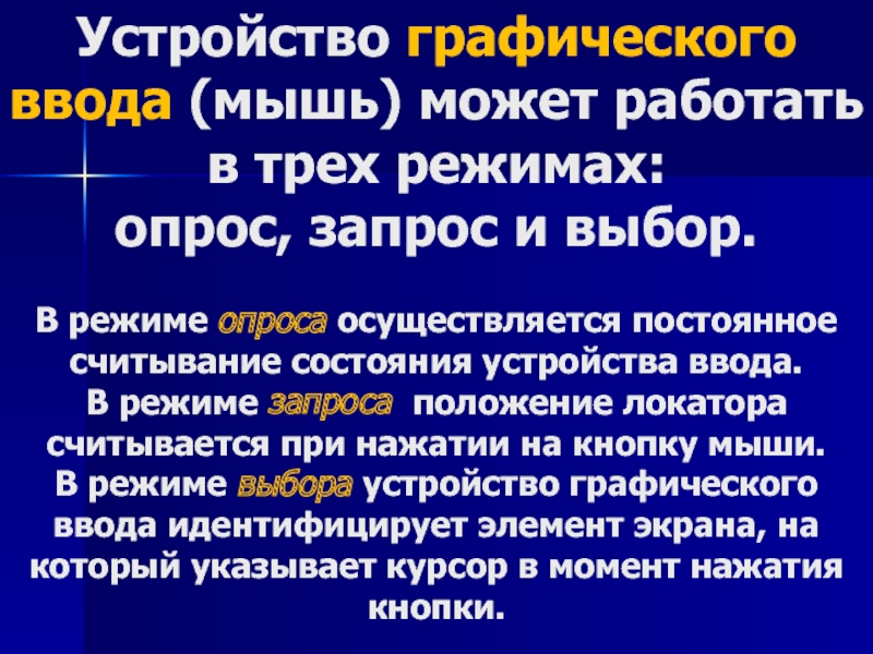 Устройство графического ввода (мышь) может работать в трех режимах: