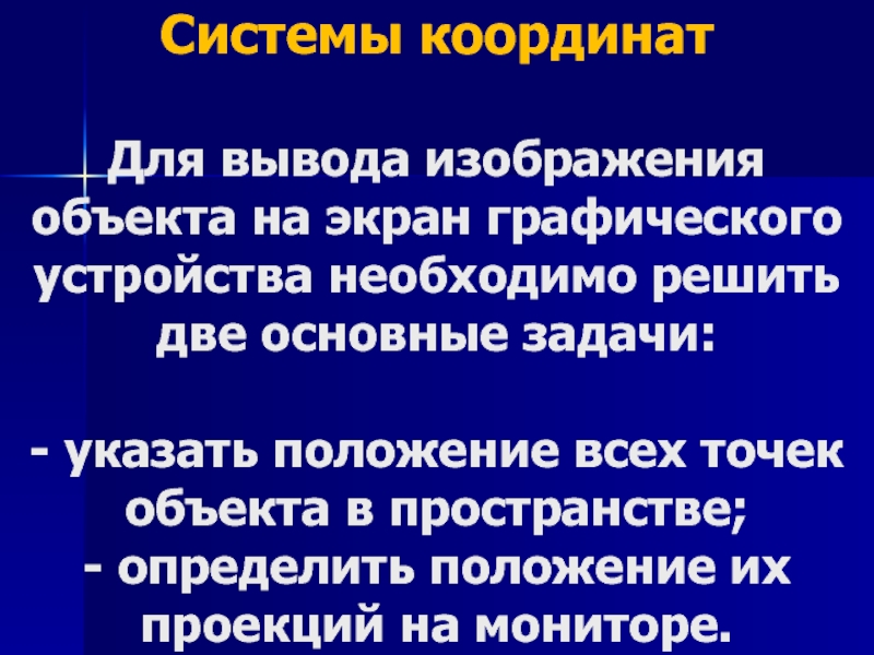 Для вывода изображения объекта на экран графического устройства необходимо решить