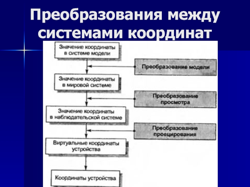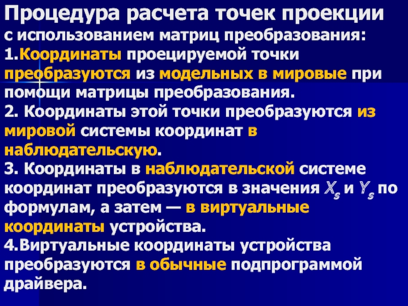 2. Координаты этой точки преобразуются из мировой системы координат в наблюдательскую.