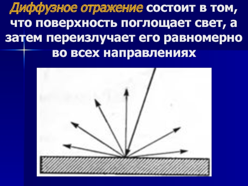 Диффузное отражение состоит в том, что поверхность поглощает свет, а затем
