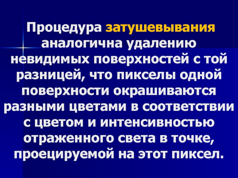Процедура затушевывания аналогична удалению невидимых поверхностей с той разницей, что