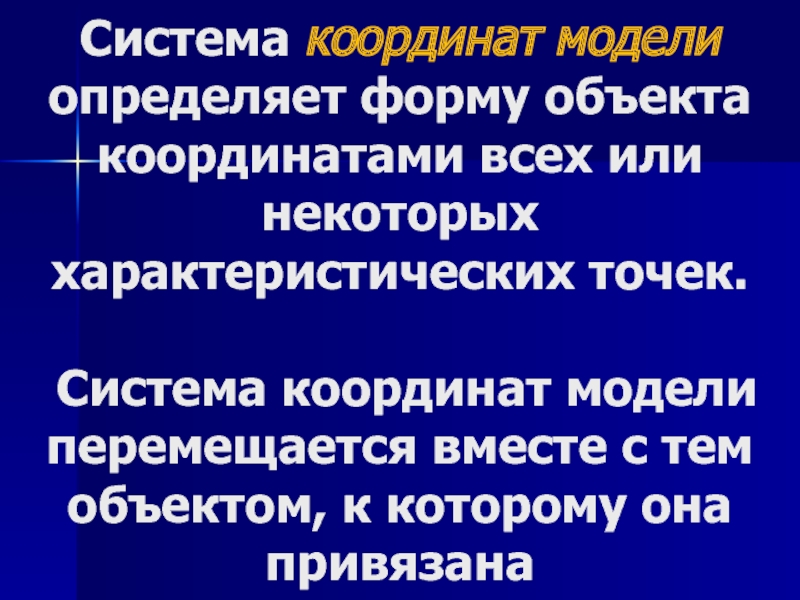 Слайд 13Система координат модели определяет форму объекта координатами всех или некоторых характеристических