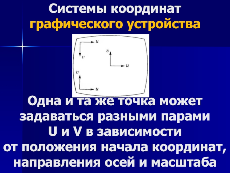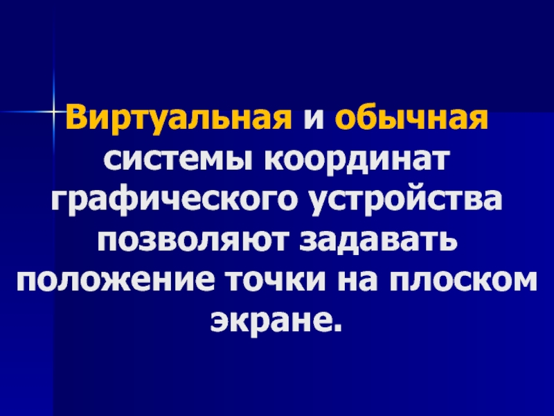 Слайд 10Виртуальная и обычная системы координат графического устройства позволяют задавать положение точки